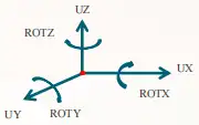 三个方向示意图如下,轴向为Z,径向为X,切向为Y。注意径向约束控制的是圆柱面的缩放变形。