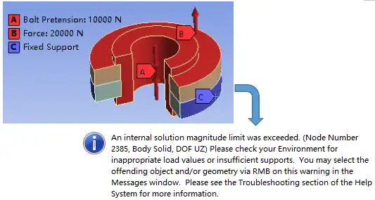☆需要注意的是,由于软件计算机制的问题,当施加一个与预紧力平行的拉力,且拉力>预紧力时,软件将不能正确计算,此时可使用力代替预紧力施加在螺栓两端。
