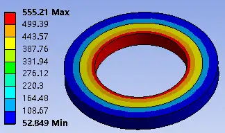 如图内外圈材料均为默认的合金钢,内圈温度为200℃,外圈为常温,固定外圈的外圆柱面求应力与变形。