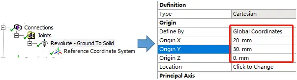 Coordinate System,点击进行设置,Define By改为全局坐标Global Coordinates并分别设置XYZ方向偏移距离。