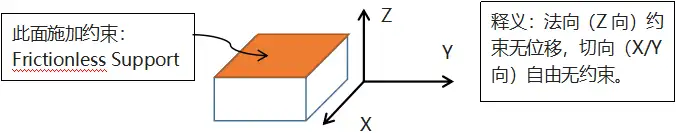 无摩擦约束是在几何体选定的面上施加法向约束,对切向不约束,效果等同于对称面的约束。