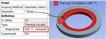 热条件可在结构分析或热分析中插入温度边界条件。使用热条件时请先确认模型材料是否已经定义了热膨胀系数。以下以圆环热膨胀计算为例。